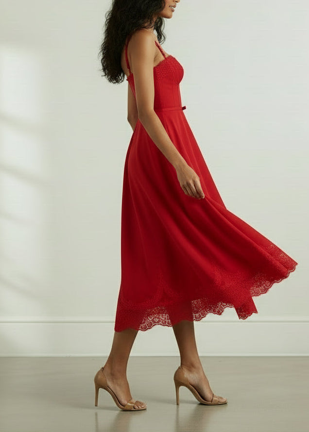 The Alexandra Midi features a graceful, flowy skirt paired with a stylish belt that accentuates the waist for an elegant silhouette. Its refined design blends comfort and sophistication, making it ideal for both formal occasions and chic everyday wear.