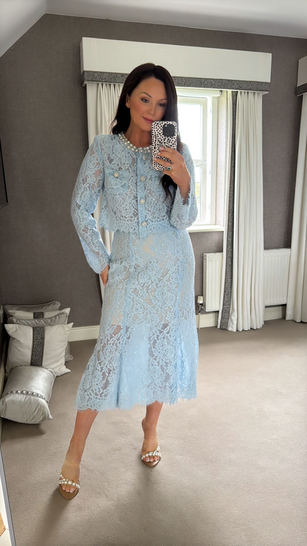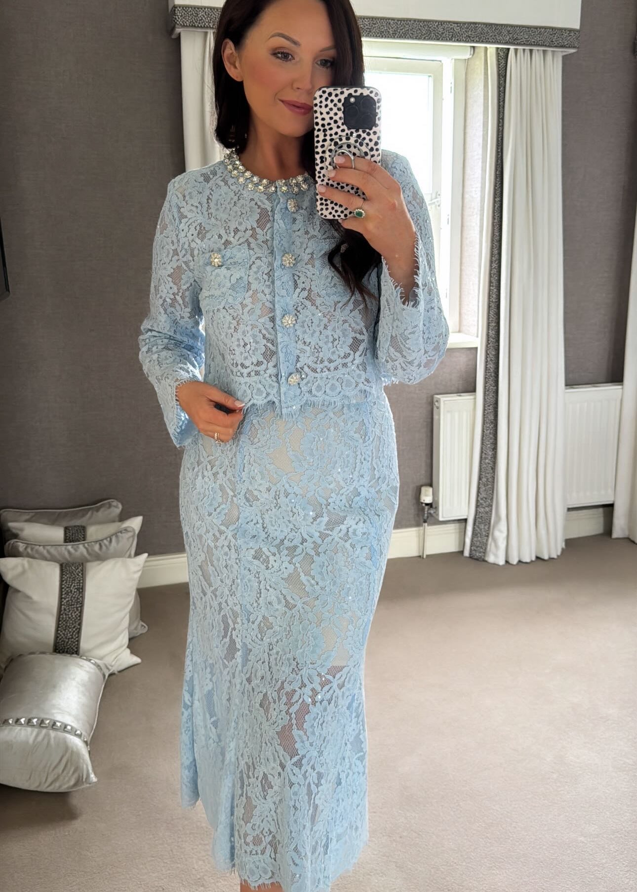 Elevate your elegance with the Leasa Set, featuring delicate blue lace intricately adorned with refined embellishments.
